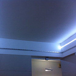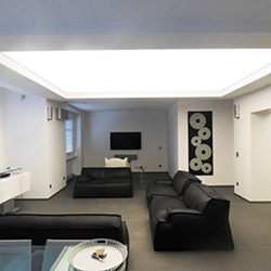 Controsoffitti, rivestimenti ed elementi di design di qualsiasi forma, colore e dimensione, inimmaginabili con i sistemi tradizionali. Nessuna intelaiatura, nessuna stuccatura; solo dei piccoli profili perimetrali in alluminio, invisibili a lavorazione ultimata, e un telo in pvc realizzato su